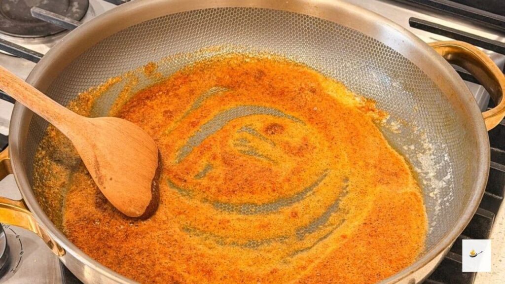 Add the seasonings and cook for about 1 minute on a low flame, and it will bloom its flavor.