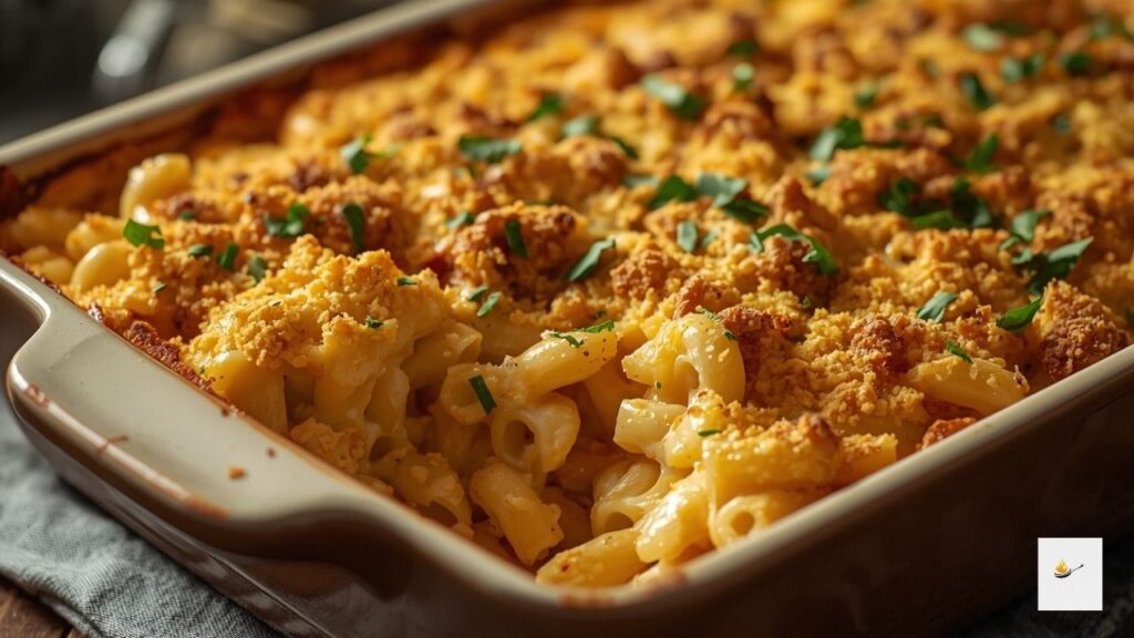 Mac and cheese truly shines at festive gatherings. You can serve it with everything from baked pork chops to juicy steak roast or crispy garlic chicken thighs, and the feast table feels complete and magical.