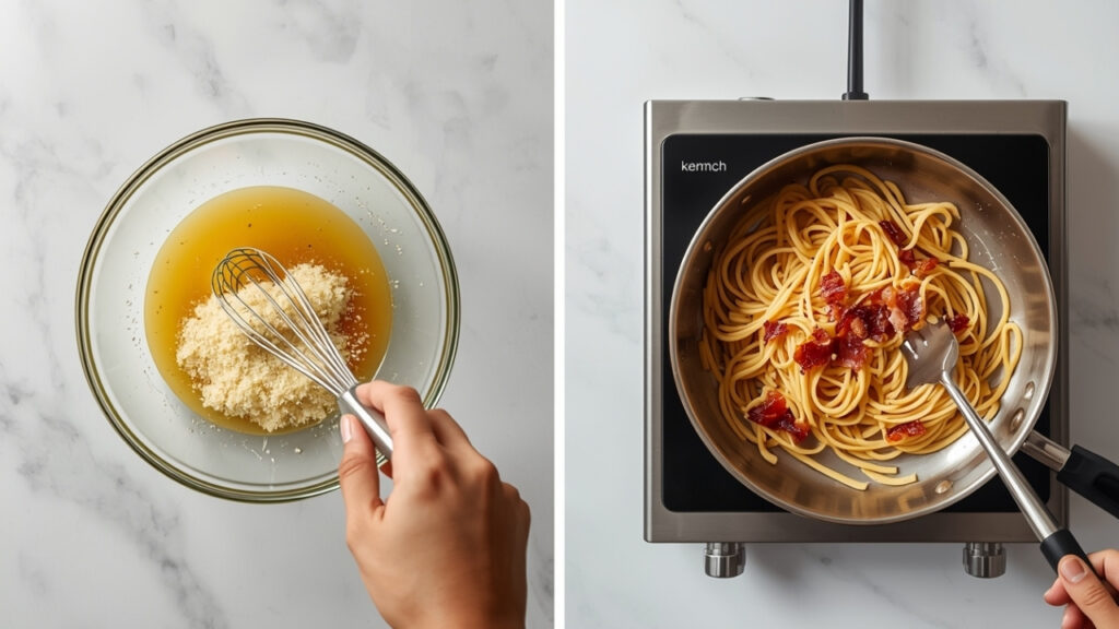 - No cream needed: Eggs and grated cheese create a naturally creamy, glossy sauce without using any heavy cream.